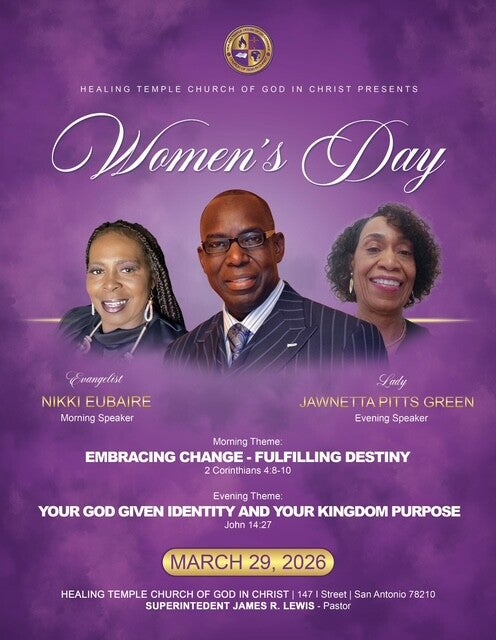 Healing Temple Church of God in Christ warmly invites you to join us for a powerful and spirit-filled Women’s Day Celebration on March 29, 2026.